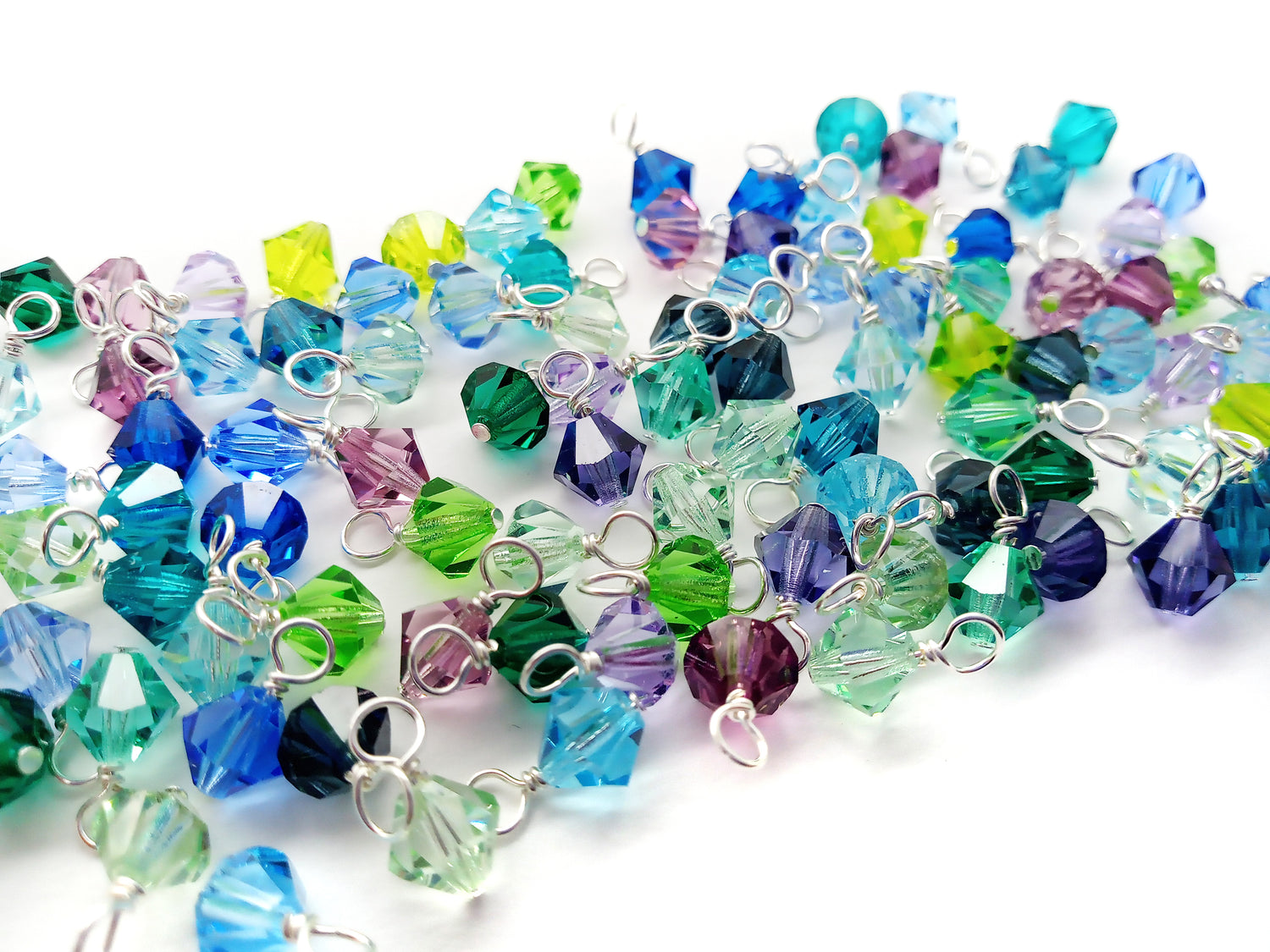 Charms in acrylic, glass, metal, and more, sorted by color.