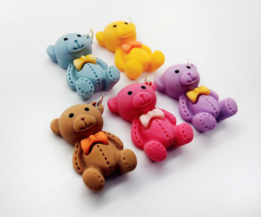 Teddy Bear Charms, 5 piece Mix, Kawaii Animal Pendants