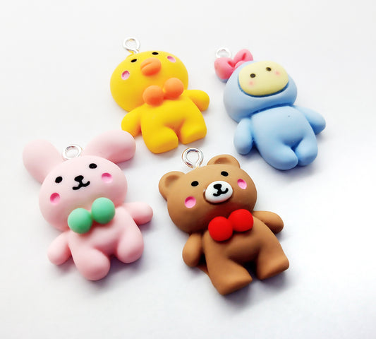 Cute Animal Charms, 5 piece Mix, Includes Frog Rabbit Chick & Bear