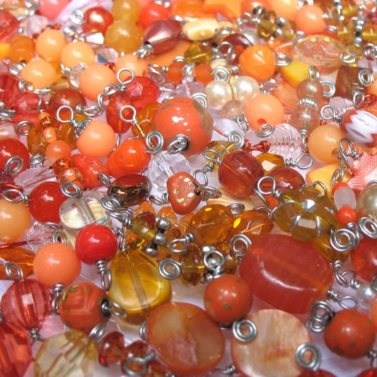 100 Bead Charms, Pink Red Yellow & Orange Dangle Grab Bag
