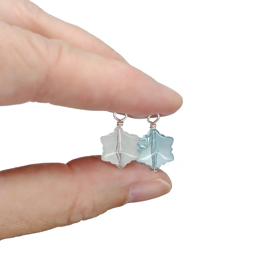 Snowflake Dangle Charms, Glass Beads for Winter or Christmas, Set of 8 in Blue & White