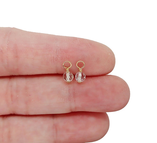 4mm White Topaz Bead Dangles, April Birthstone Charms, Pair