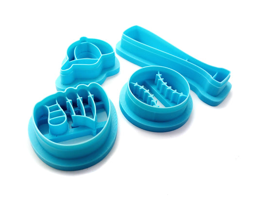 Small cutters for polymer clay or air dry clay creations: earrings, pendants, jewelry charms and miniatures. Themes include Christmas, Easter, Valentine's Day, Halloween, cute animals, and more.