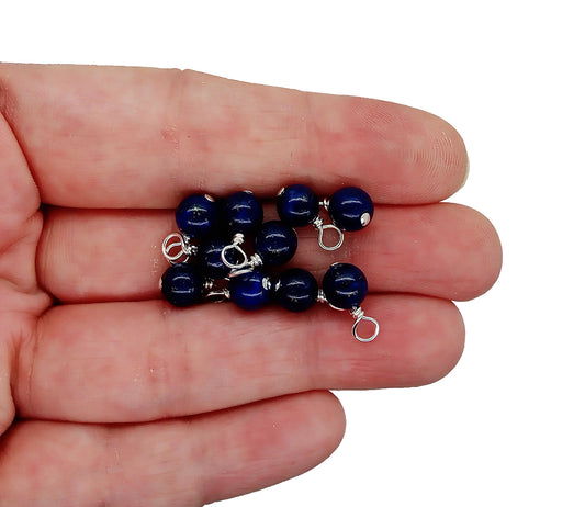 Lapis Lazuli Bead Charms, Blue 5mm - 6mm Gemstone Dangles, 10 pc