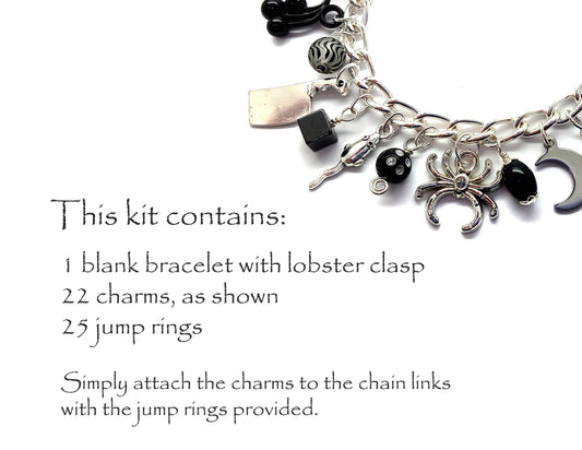 Goth Charm Mix, 20 pieces, Black Dangles & Creepy Metal Charms