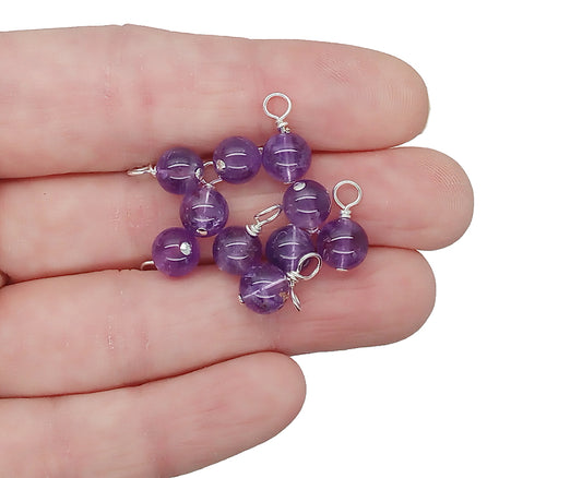 A Grade Amethyst 6mm Bead Charms, Natural Gemstone Dangles, 10 pcs