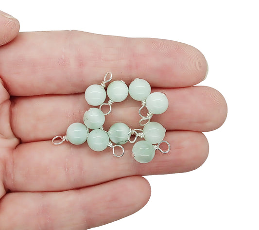 Green Moonstone 6mm Bead Charms, Angelite Gemstone Dangles, 10 pc