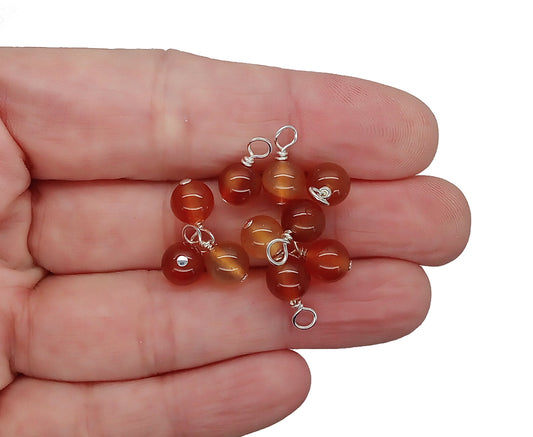 Carnelian Agate 6mm Bead Charms, 10 pc Gemstone Dangles