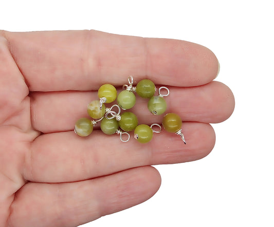Green Aventurine 6mm Bead Charms, Gemstone Dangles, 10 pc
