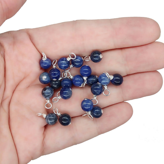 Sodalite 6mm Bead Charms, Blue Gemstone Dangles, 10 pc