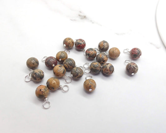 Leopard Skin Agate 6mm Bead Charms, Gemstone Dangles, 10 pc