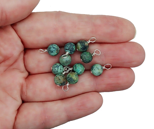 African Turquoise 6mm Bead Charms, Matte Natural Blue Gemstone Dangles, 10 pc