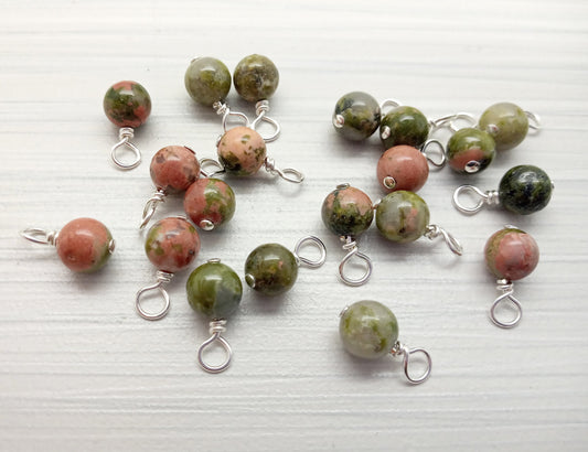 Epidote 6mm Bead Charms, Gemstone Dangles, 10 pc