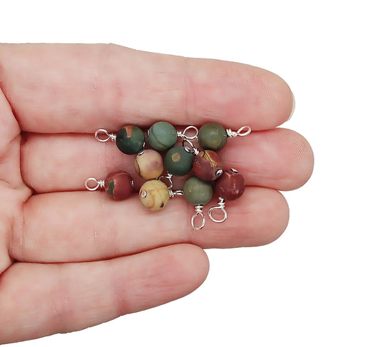 Red Creek Jasper 6mm Bead Charms, Picasso Jasper Gemstone Dangles, 10 pc