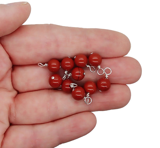 Red Jasper 6mm Bead Charms, Red Poppy Jasper Gemstone Dangles, 10 pc