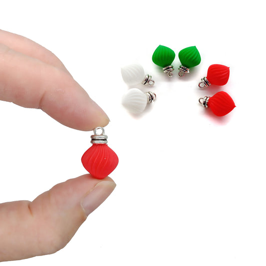 Christmas Earring Charms, Red White & Green Mini Ornament Pendants, 6 pc