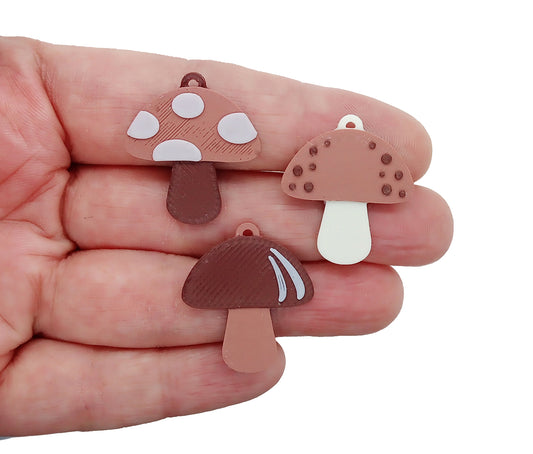 6 Brown Mushroom Dangle Charms, One Pair of Each Style