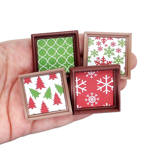 Christmas Dollhouse Wall Art - 8 Framed Mini Prints, 1:12 Scale