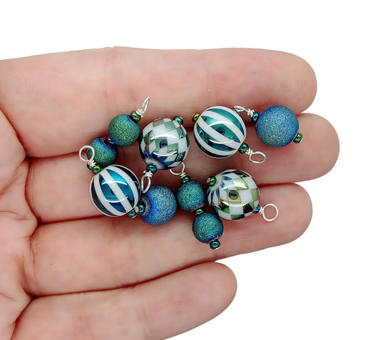 Miniature Christmas Ornaments, 8 pieces, Blue & Green Winter Balls