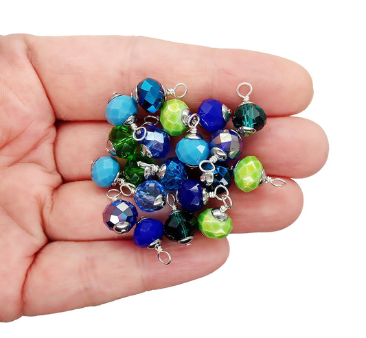 Blue & Green Miniature Glass Christmas Ornaments, Set of 8