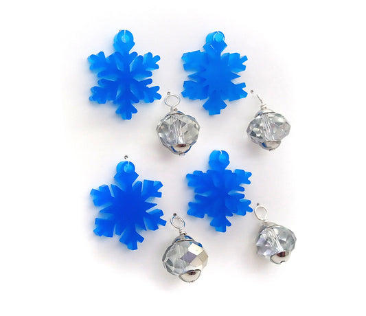 Miniature Christmas Ornaments, 8 pc, Blue Snowflakes & Silver Balls