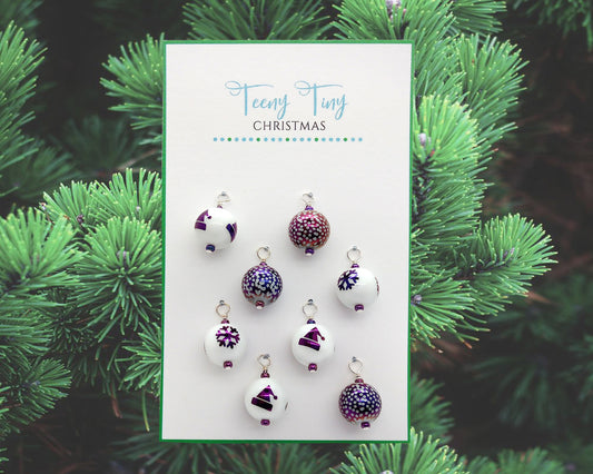 Purple Miniature Christmas Ornaments, 8 pc, Glass Baubles for Miniature Trees