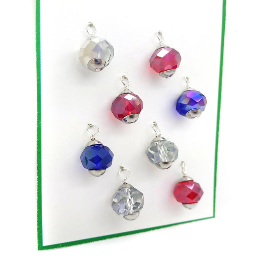 Glass Mini Christmas Ornaments in Red Blue & Silver, 8 pieces