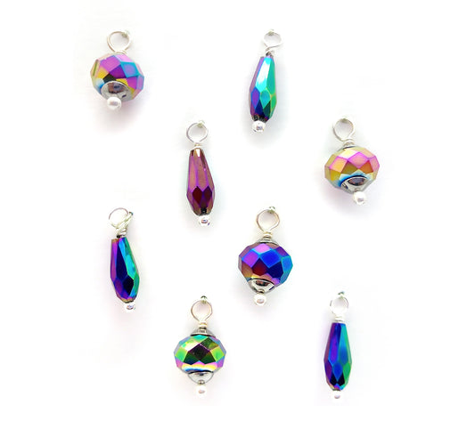 Miniature Christmas Ornaments, 8 pieces, Rainbow AB Glass Baubles
