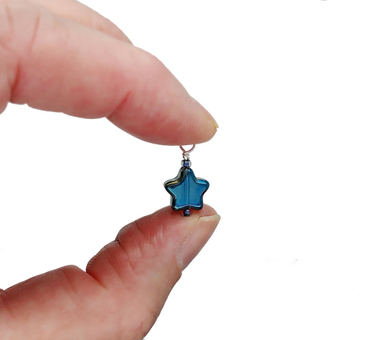 Tiny Blue Star Christmas Ornaments for Miniature or Dollhouse Trees, 8 pc