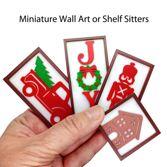 Christmas 3D Wall Art for Miniature Scenes, 1:6 Scale Tiered Tray Shelf Sitters
