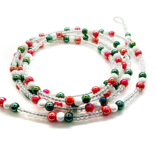 Miniature Christmas Tree Garland, Red White & Green Beaded Wire