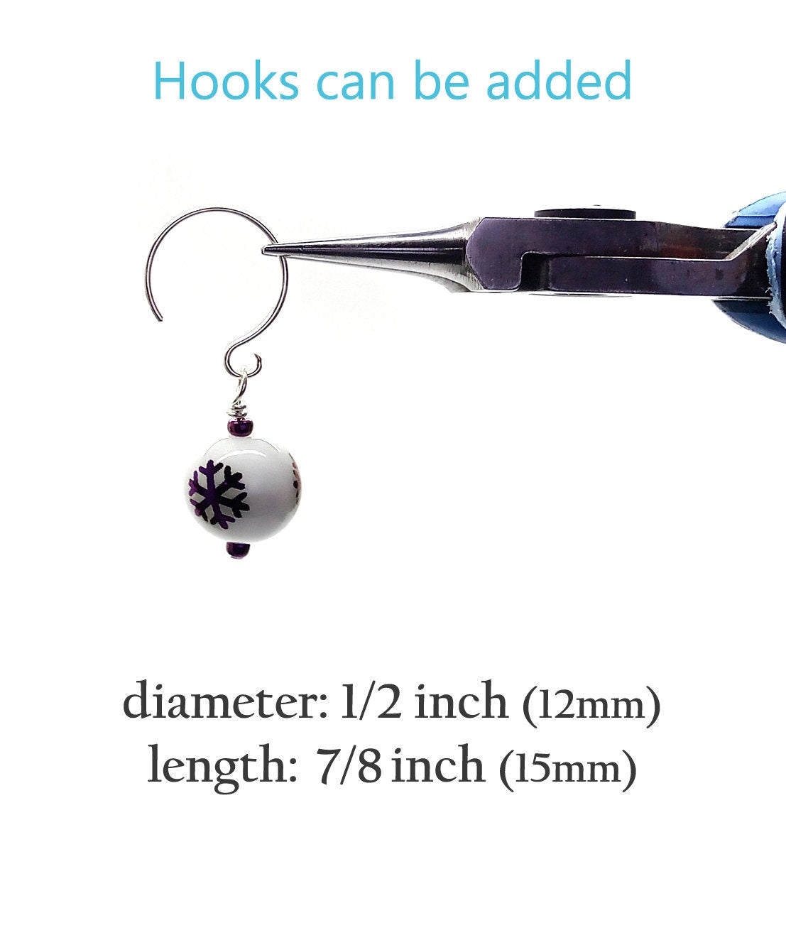 You may add silver-plated hooks to your order. The hooks measure about 1/2 inch (12mm) in diameter, and are about 7/8 inch (15mm) long.