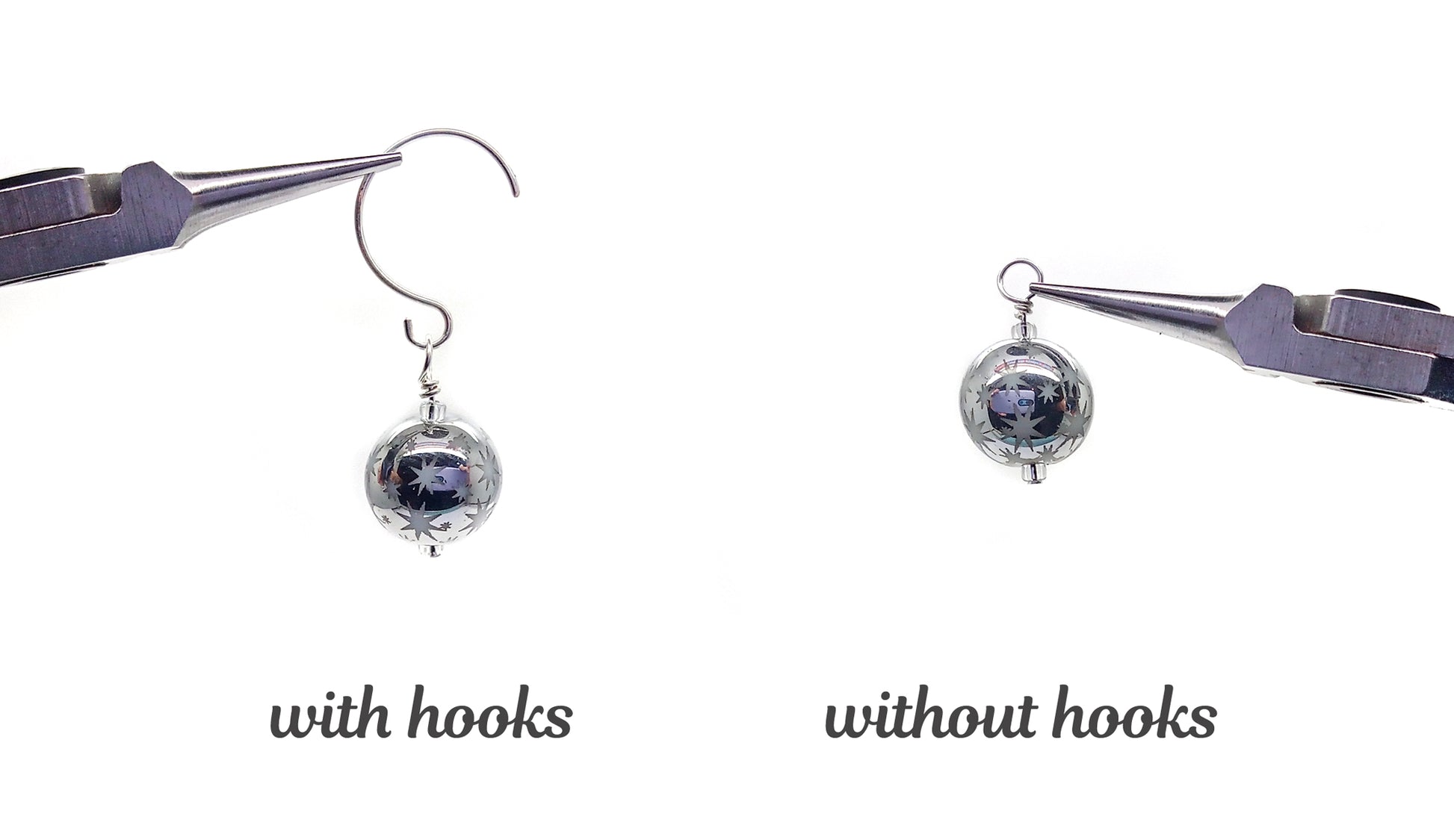 You may add silver-plated hooks to your order. The hooks measure about 1/2 inch (12mm) in diameter, and are about 7/8 inch (15mm) long.