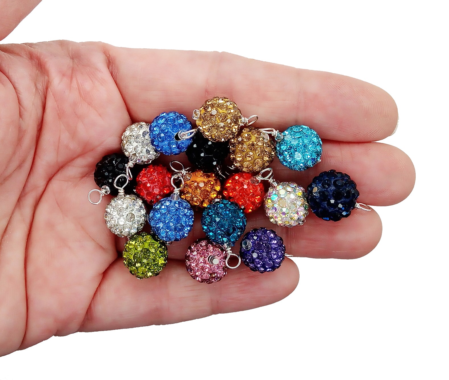 The ornaments are handmade with pretty 10mm to 12mm pave rhinestone beads, glass seed beads and jewelry wire. They measure about 1/2" long, and are perfect for 1:6 and 1:12 scale dollhouse or tabletop mini trees.