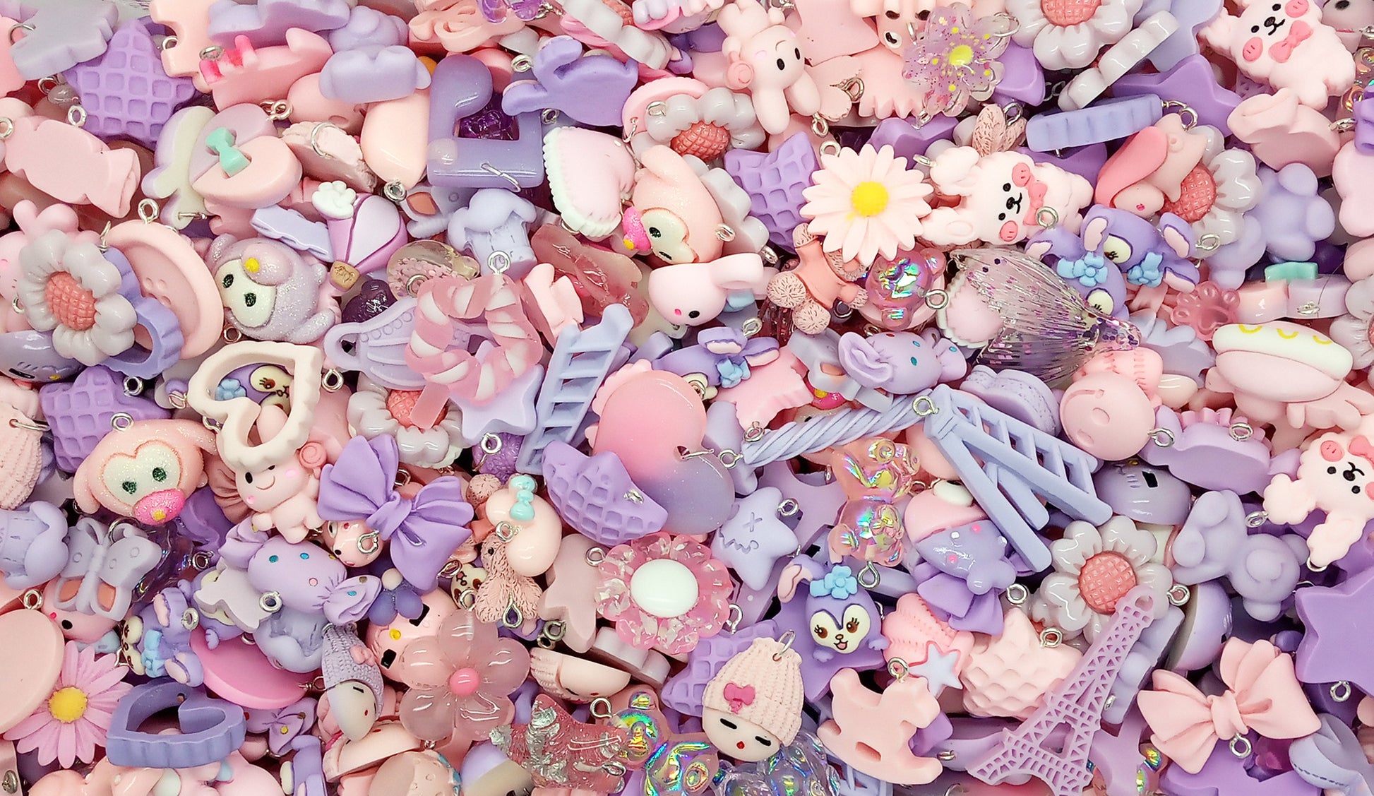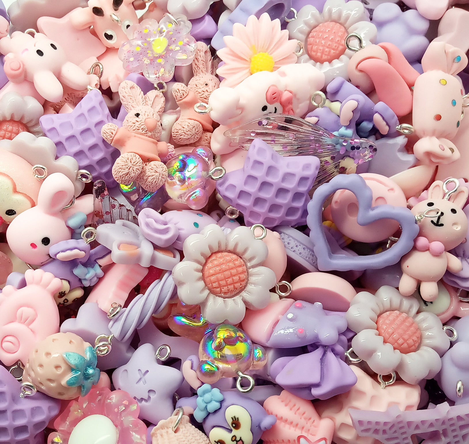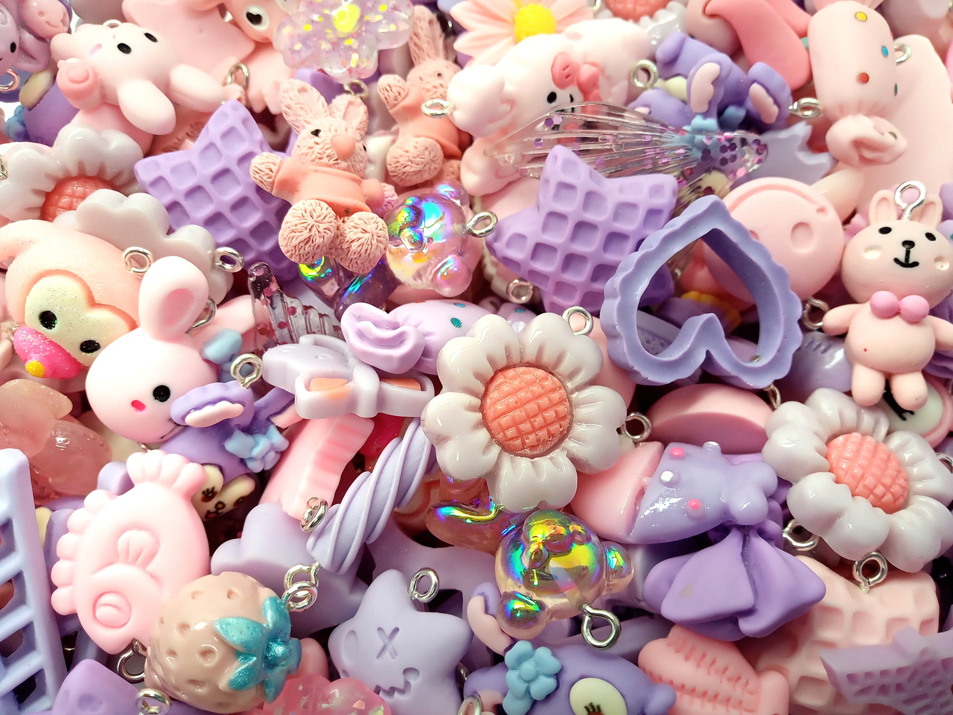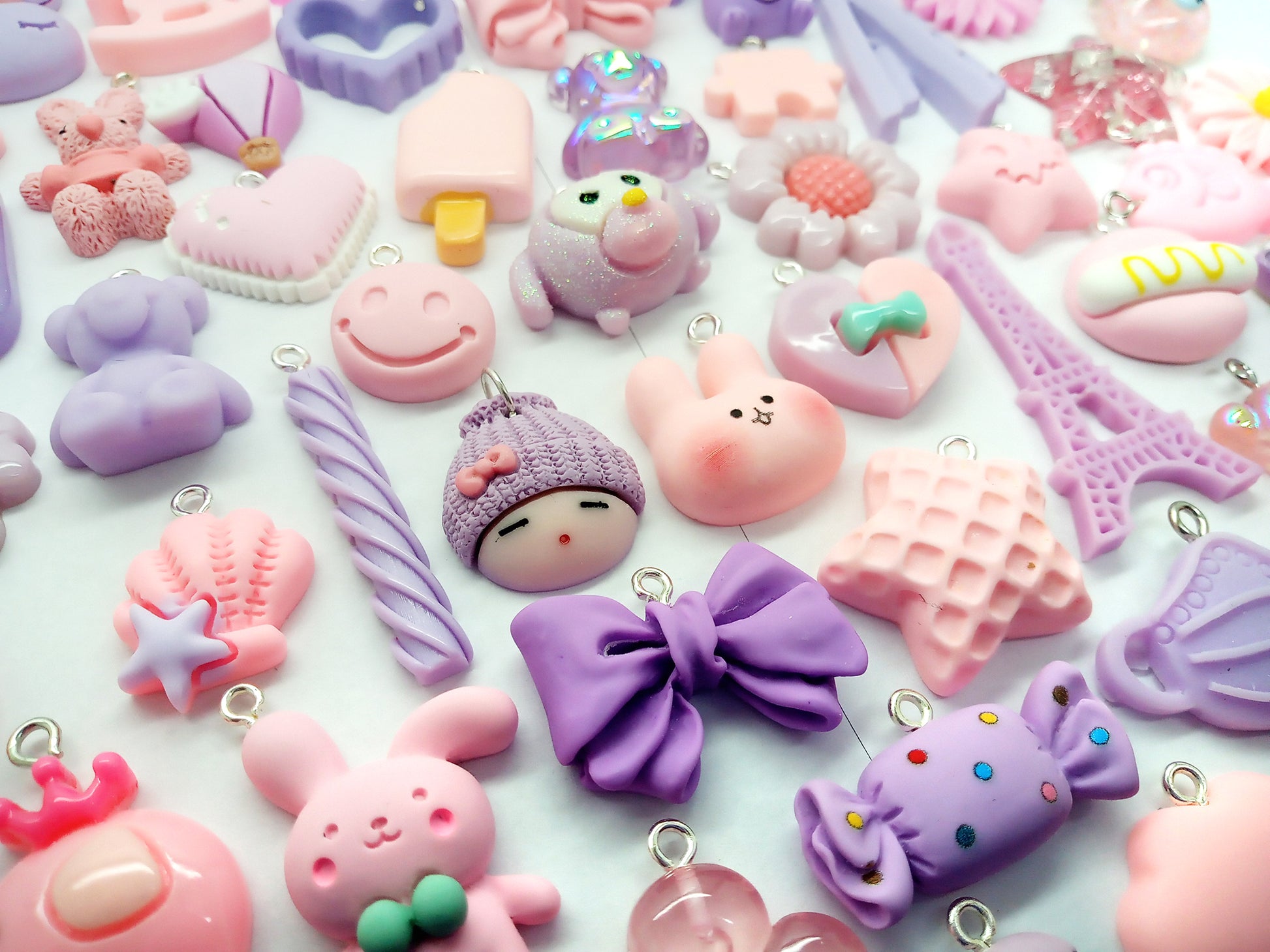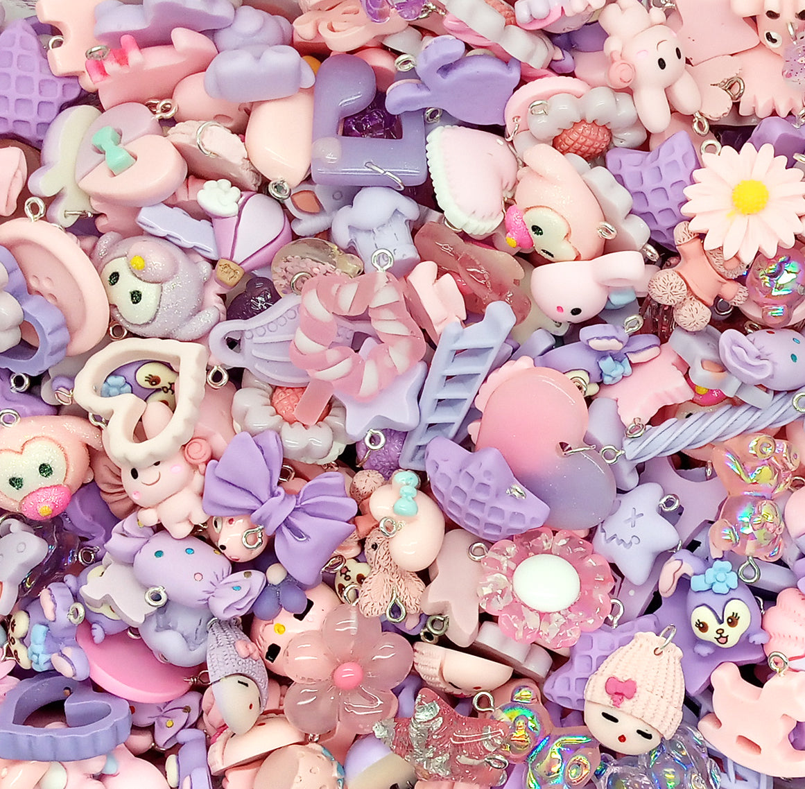 Pink & Purple Charm Mix, 20 pc Cute Resin Cabochon Grab Bag
