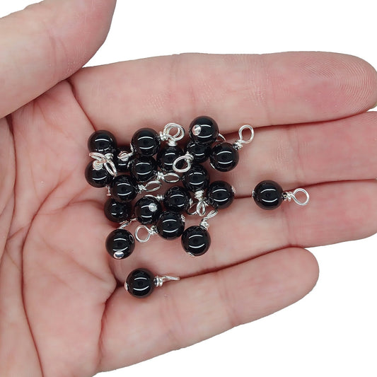 Black Onyx 6mm Bead Charms, Gemstone Dangles, 10 pc