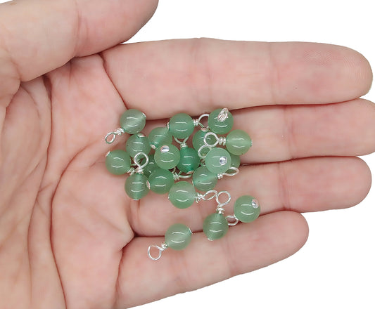 Green Aventurine 6mm Bead Charms, Gemstone Dangles, 10 pc