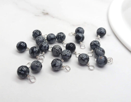 Snowflake Obsidian 6mm Bead Charms, Gemstone Dangles, 10 pc